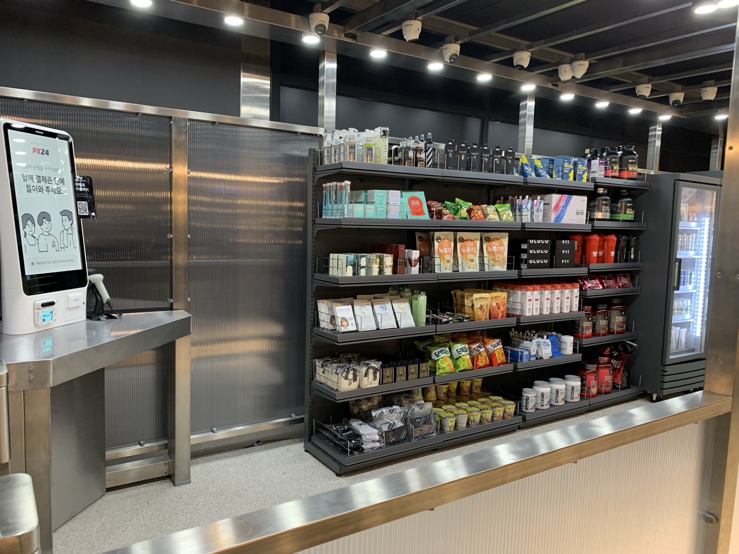 - 파인더스에이아이의 AI 마이크로 스토어 ‘PX24’는 중구 피트니스101 헬스장 내에 위치한 5평 규모의 초소형 매장입니다. 개인 정보 제공 동의 후 입장하여 물건을 집고 스크린에 서면 집은 물건이 즉각 화면에 노출됩니다. 산 물건들이 맞는지 확인 후에 카드를 꽂고 결제 후 퇴장하면 됩니다.